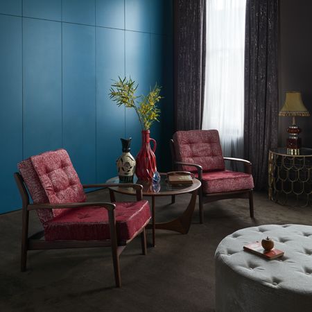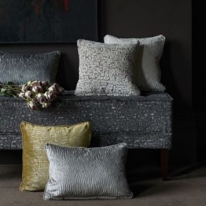 De collectie Dimensions bestaat uit meubelstoffen met smakelijke, gedetailleerde fluwelen patronen gemaakt met metallic effecten. Alle stoffen in de collectie zijn zeer soepel, sterk en uitermate geschikt voor meubels, gordijnen en sierkussens in huiselijk en projectmatig gebruik. De kleuren variëren van uitbundige kleuren zoals damson & gold en geavanceerde neutralen zoals grey, taupe en houtskool. Slijtweerstand > 50.000 toeren Martindale.