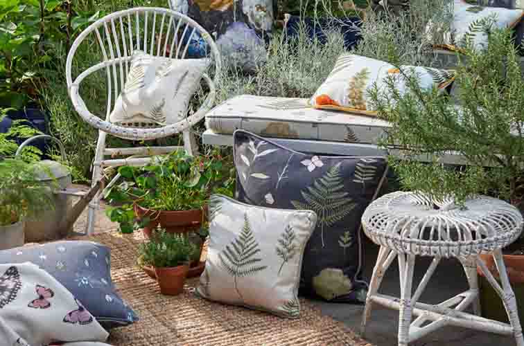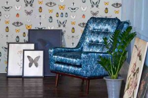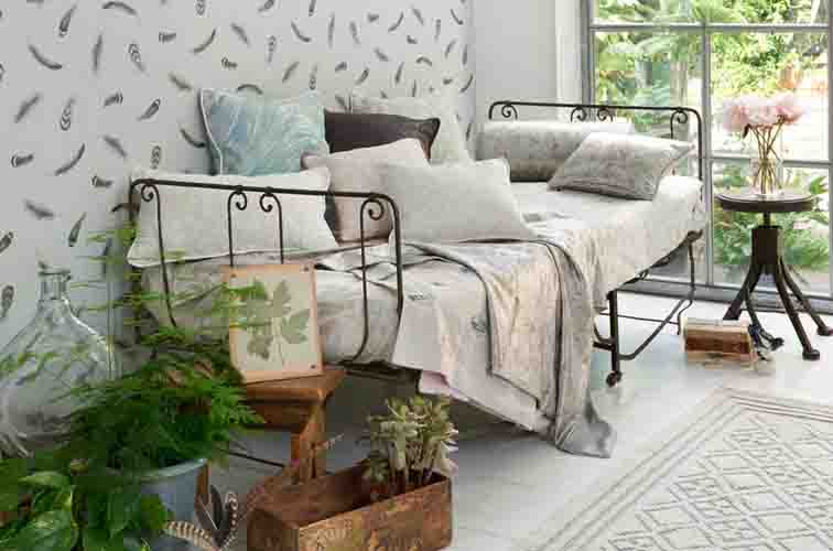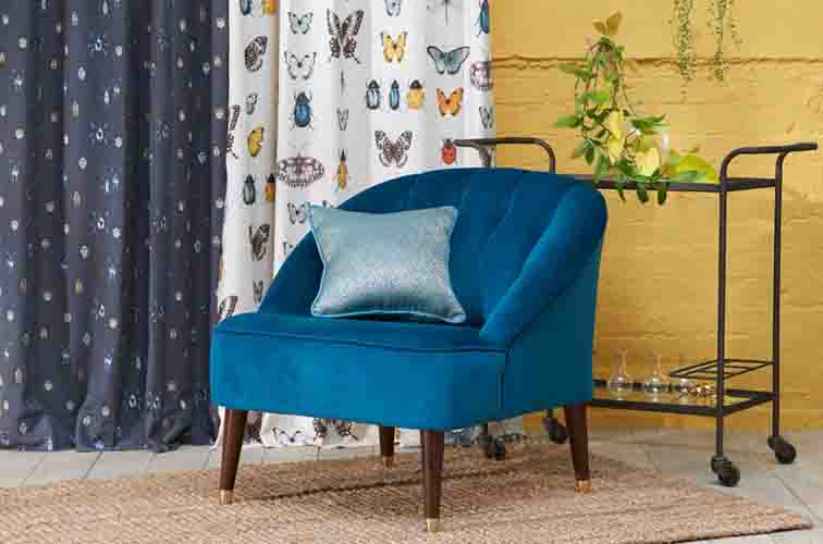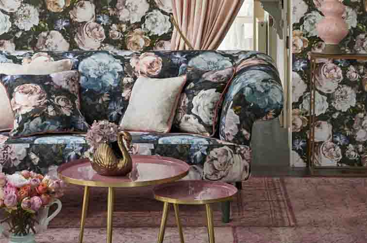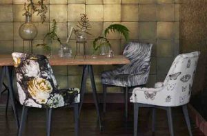 Botanica stoffen Een exotische combinatie van stoffen waarin het ‘rariteitenkabinet’ uit de renaissance een modern en wat lichter tintje krijgt. Handgetekende details zoals glinsterende kevers, vlinders en donkere, schilderachtige bloem-motieven maken deze collectie extra fascinerend.
