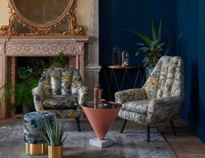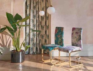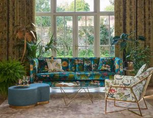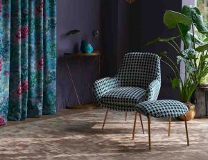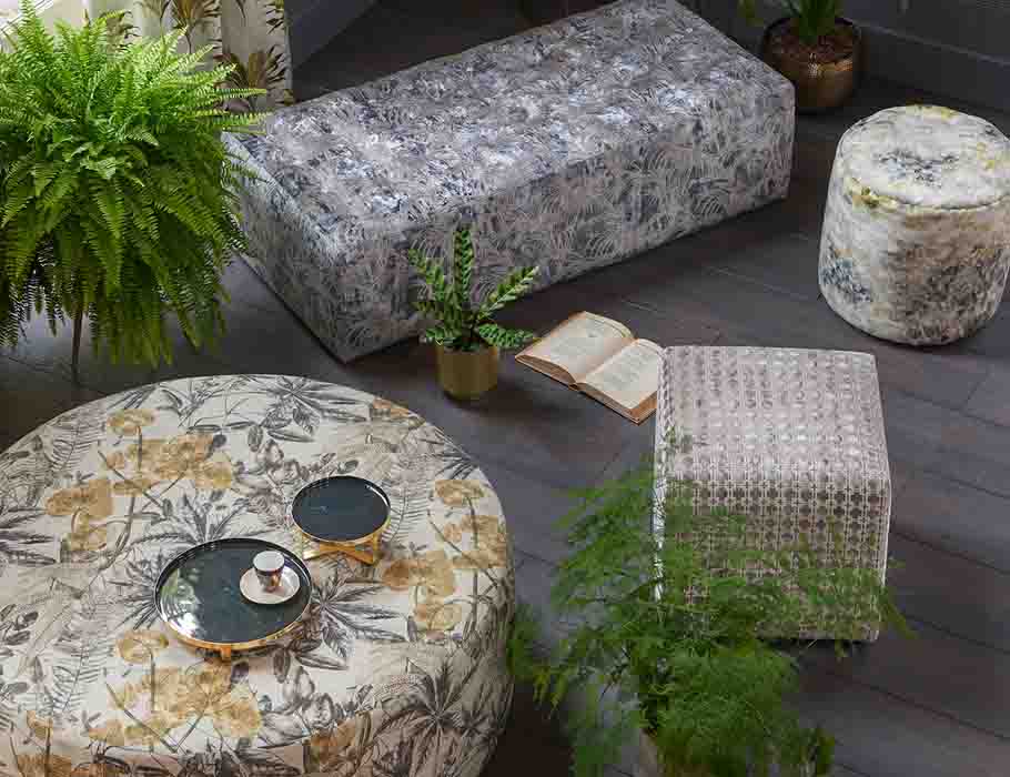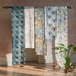 Paradijsvogels, passievruchten en exotisch eilandleven verblinden tegen weelderige fluwelen, rustiek linnen, borduurmotieven en ingewikkelde weefpatronen. Met 45-kleuren, variërend van ijsvogeltonen tot levendige teer en zachtere combinaties van leisteen, amethist en blos, is deze prachtige collectie een verleidelijke hommage aan het tropische eilandleven.