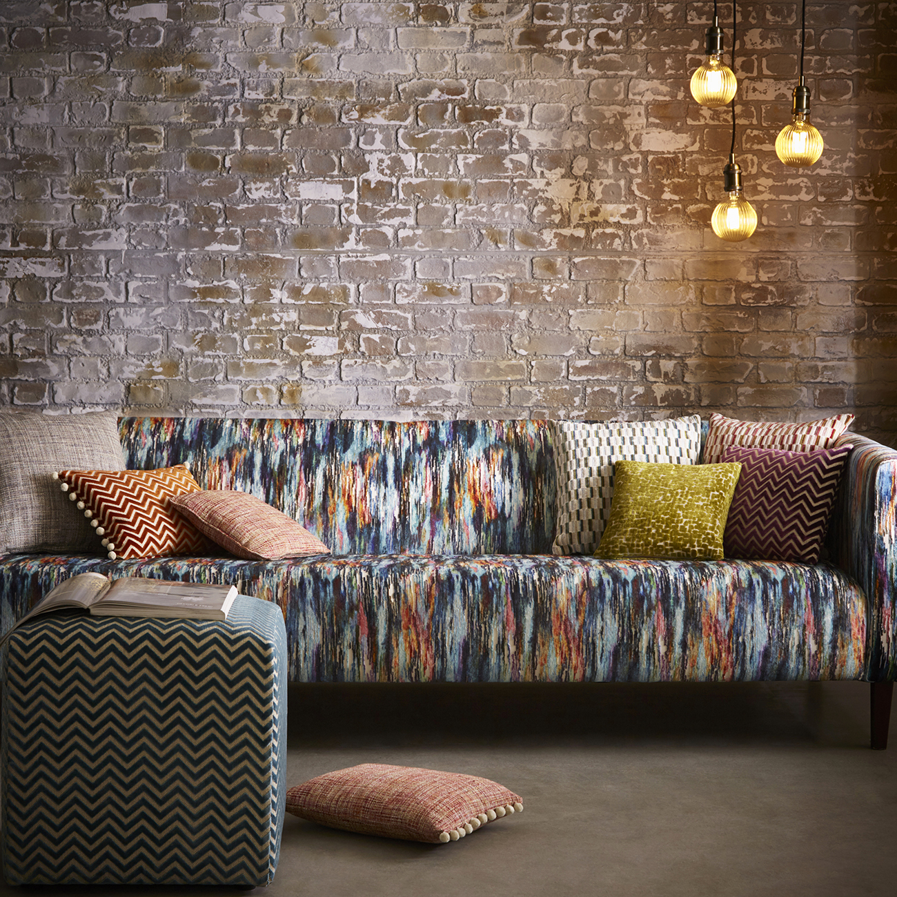 Luxueuze velours in een groot aantal modieuze kleuren brengen huiselijk comfort. Vijf ontwerpen, van impressionistische stijlen tot geavanceerde geometrie. Deze zijn verkrijgbaar in een breed scala aan kleuren, variërend van kalmerende neutrale kleuren tot levendige schakeringen van Fuchsia, Peacock en Citrus. Deze multifunctionele velours en bouclé-weefsels zijn echt boeiend.