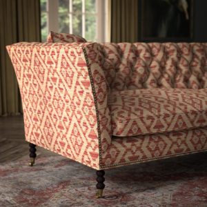 Zware kwaliteit meubelstof geweven met zachte chenille garens. De stof heeft een authentiek kelim patroon. Slijtweerstand 20.000 toeren Martindale. Breedte 140 cm.