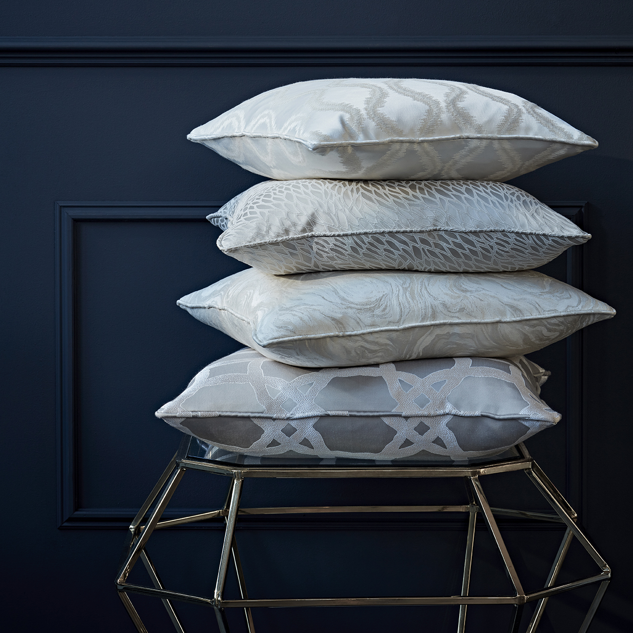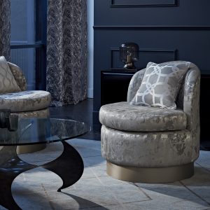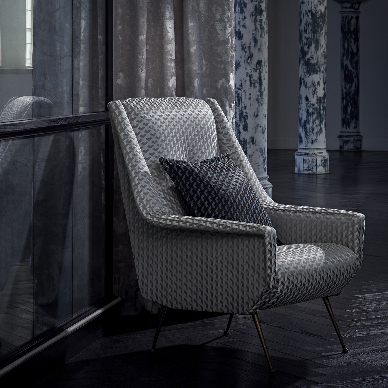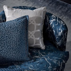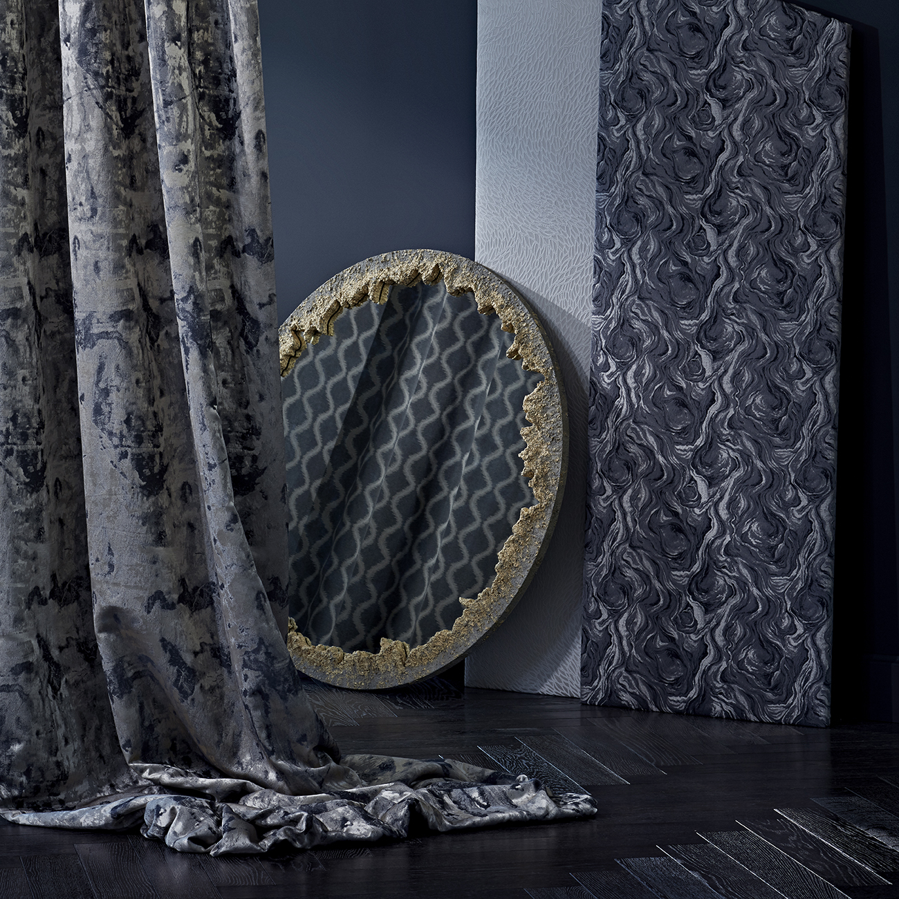 Het verhaal van het succesvolle Lusso-assortiment gaat verder met deze prachtige collectie glanzende stoffen. Wervelende marmer, verontruste texturen en metallic highlights glinsteren in zeven kleurgroepen, van opvallende ijsvogel, zwart en goud tot zachte champagnes en linnen tinten. Sierlijke geometrieën, verfijnde texturen en een 3D-effect koraalpatroon bevorderen stijl en luxe.