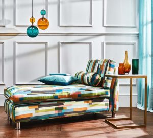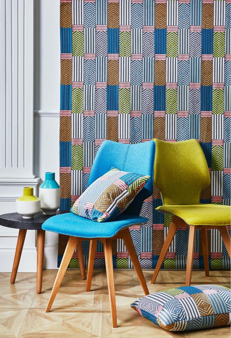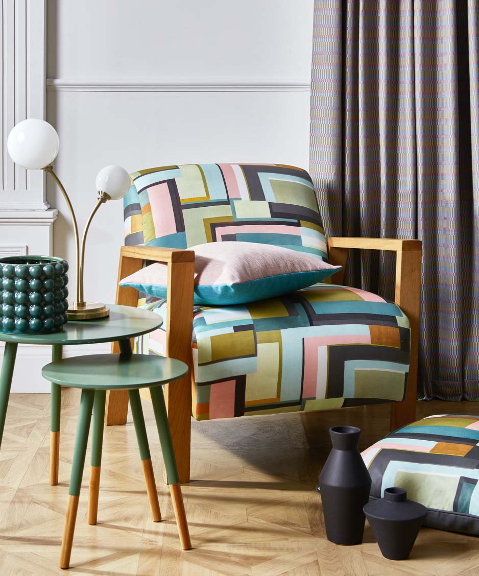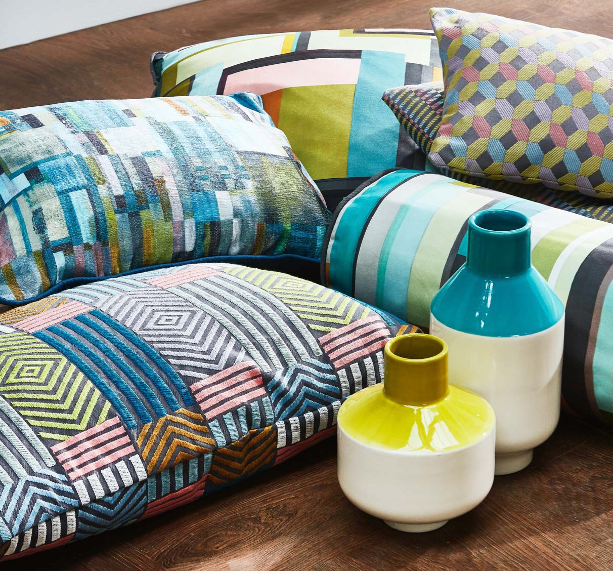 Deze trendy collectie digitale prints is gedurfd, geometrisch en geïnspireerd door Mondriaan en zal een statement maken in elke kamer. Muse heeft een opwindend en dramatisch ontwerp en biedt een eigentijdse kijk op het retro-thema, met stoffering van satijn en chenille-prints, afgestemd op kleinschalige geometrische jacquards en een modern borduurwerk. De zevendelige collectie weerspiegelt de trend van kleurvertrouwen en wordt aangeboden in een gedurfd, maar verfijnd palet van eigentijdse felle kleuren, gesuikerde pastelkleuren en rijke herfsttinten.