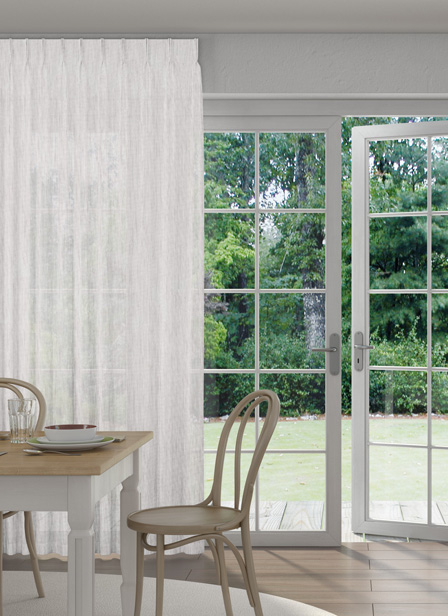 - Soepel vallende, fijn geweven inbetween gordijnstof in linnen-look.
