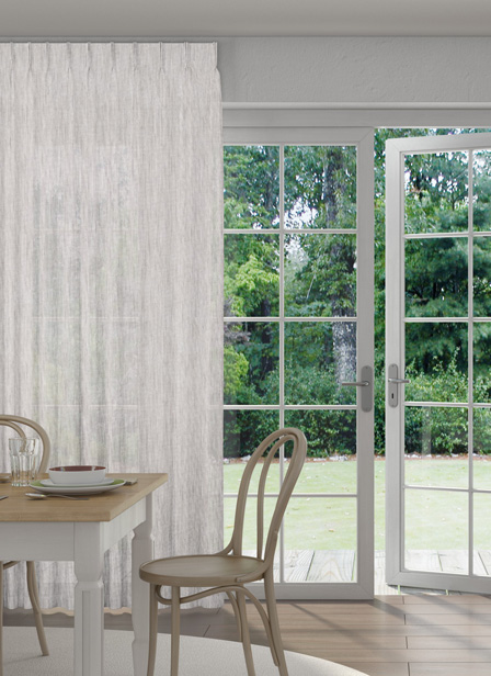 - Soepel vallende, fijn geweven inbetween gordijnstof in linnen-look.