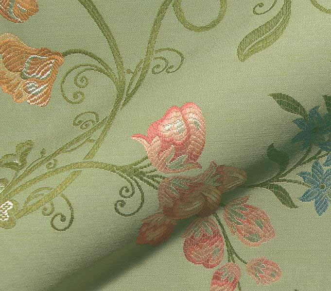 Een fijngeweven stof met een “geborduurd” dessin. Zeer geschikt als meubelstof, gordijnstof en voor decoratieve toepassingingen zoals sierkussens.