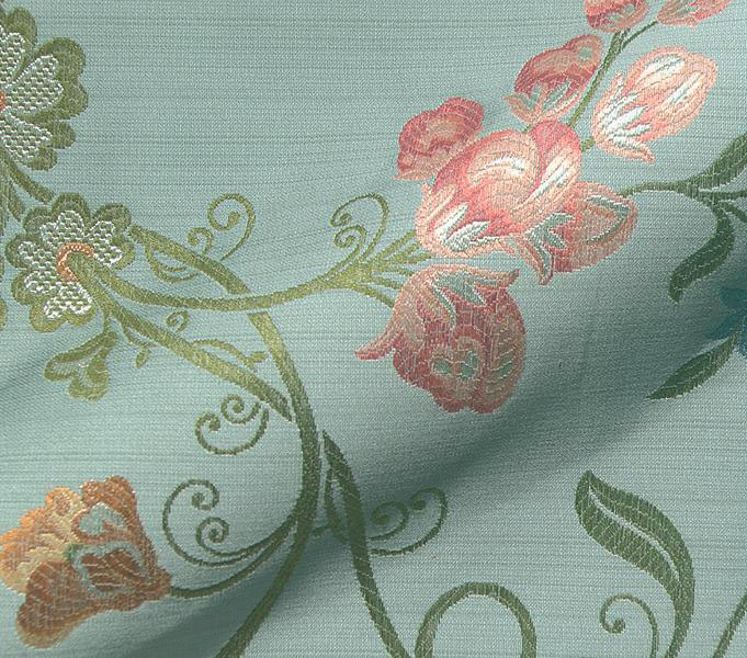 Een fijngeweven stof met een “geborduurd” dessin. Zeer geschikt als meubelstof, gordijnstof en voor decoratieve toepassingingen zoals sierkussens.