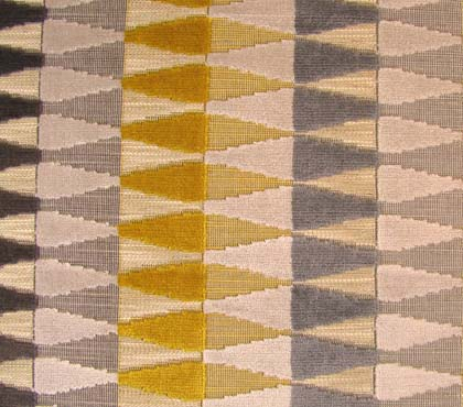 Moderne meubelstof met prachtige grafische ontwerp. De stof heeft een fijne structuur en heeft opliggende, velours patronen. Slijtweerstand 25.000 toeren Martindale. 140 cm breed.