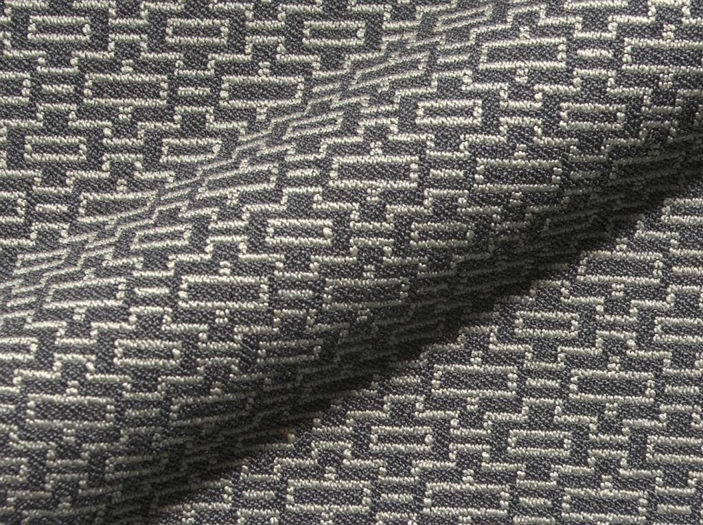 Gladde meubelstof met een geometrisch dessin. De stof heeft een fijne structuur. Slijtweerstand 20.000 toeren Martindale. 144 cm breed. 5 jaar garantie.