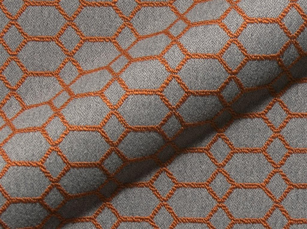 Gladde meubelstof met een geometrisch dessin. De stof heeft een fijne structuur. Slijtweerstand 18.000 toeren Martindale. 144 cm breed. 5 jaar garantie.