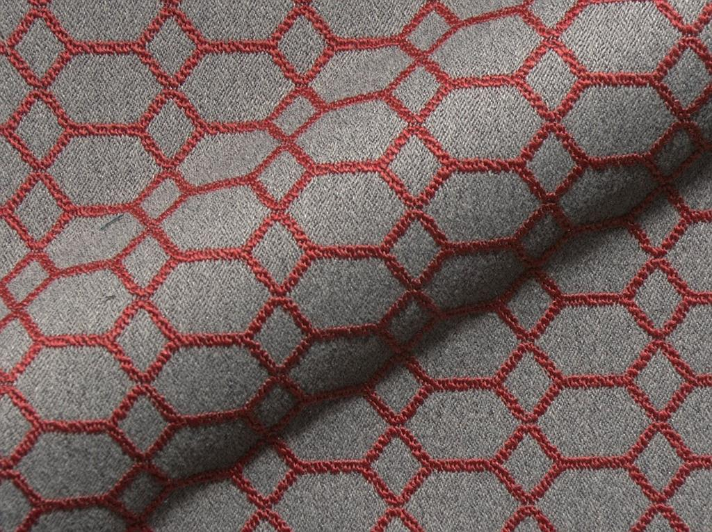 Gladde meubelstof met een geometrisch dessin. De stof heeft een fijne structuur. Slijtweerstand 18.000 toeren Martindale. 144 cm breed. 5 jaar garantie.