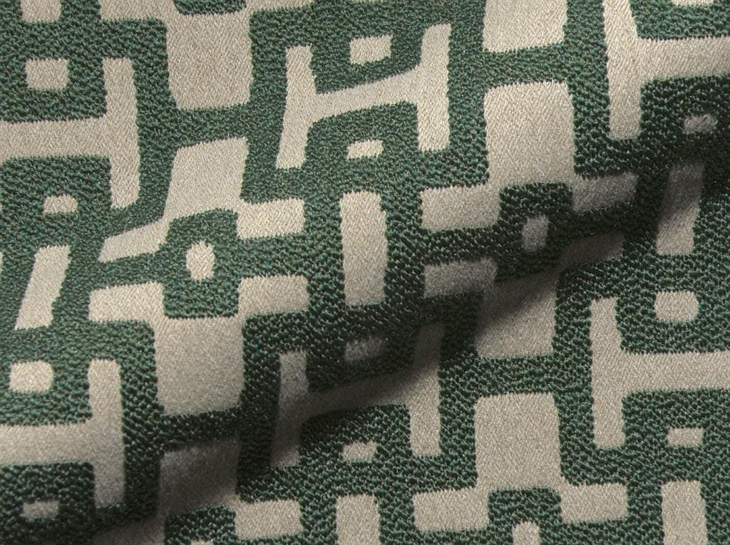 Gladde meubelstof met een geometrisch dessin. De stof heeft een fijne structuur. Slijtweerstand 18.000 toeren Martindale. 144 cm breed. 5 jaar garantie.