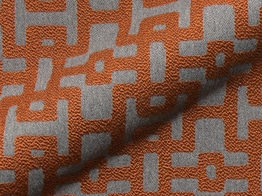 Gladde meubelstof met een geometrisch dessin. De stof heeft een fijne structuur. Slijtweerstand 18.000 toeren Martindale. 144 cm breed. 5 jaar garantie.