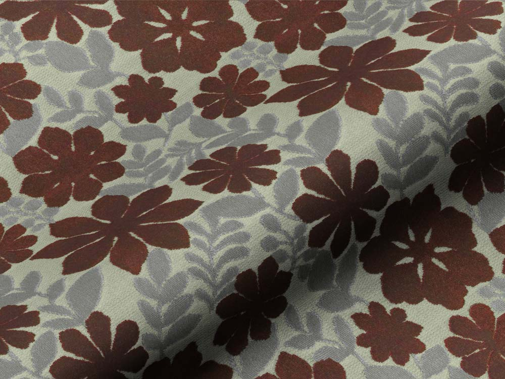 - Fijn geweven ondergrond met daarop velours bloempatronen.