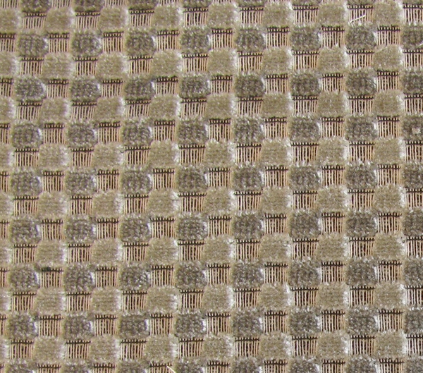 - Fijn geweven, glanzende ondergrond met daarop kleine velours vierkantjes.