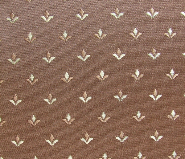 Klein klassiek patroontje geweven op een satijnen ondergrond. De stof is vlekwerend behandeld. 100% polyester dus kleurecht. Slijtweerstand 25.000 toeren Martindale. 140 cm breed.