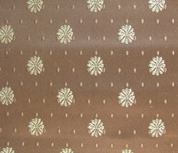 Klein klassiek patroontje geweven op een satijnen ondergrond. De stof is vlekwerend behandeld. 100% polyester dus kleurecht. Slijtweerstand 25.000 toeren Martindale. 140 cm breed.