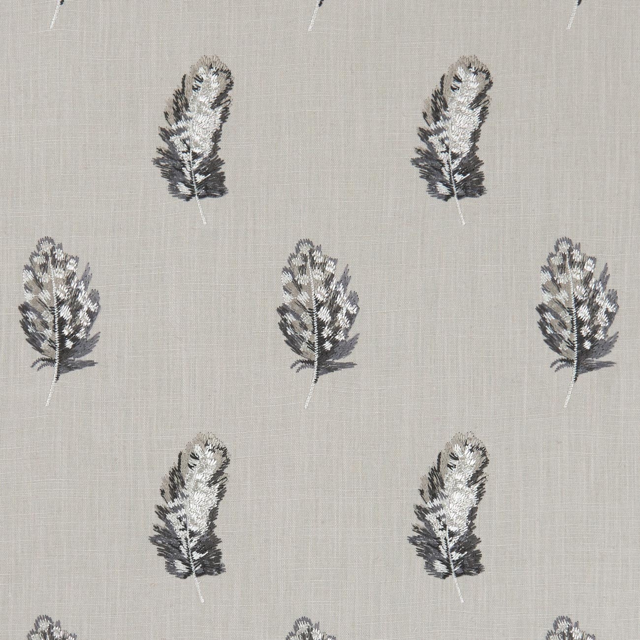 • Fijn geweven decoratiestof met geborduurde veren.