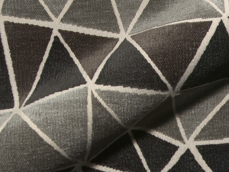 Sterke, zachte velours meubelstof. De stof heeft een trendy geometrisch patroon. Slijtweerstand 46.000 toeren Martindale. Breedte 140 cm.