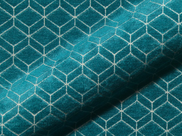Sterke, zachte velours meubelstof. De stof heeft een trendy geometrisch patroon. Slijtweerstand 46.000 toeren Martindale. Breedte 140 cm.