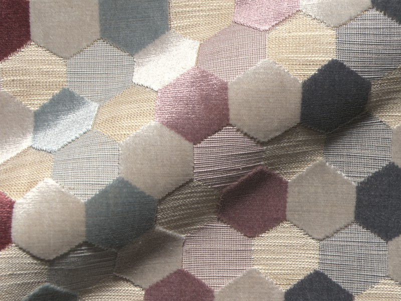 Meubelstof met een honingraat patroon. Deze stof heeft een linnen ondergrond gecombineerd met warm velours. Slijtweerstand 25.000 toeren Martindale. 138 cm breed.