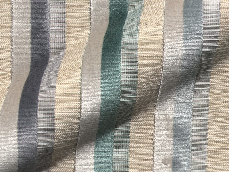 Meubelstof met een gestreept patroon. Deze stof heeft een linnen ondergrond gecombineerd met warm velours. Slijtweerstand 25.000 toeren Martindale. 138 cm breed.