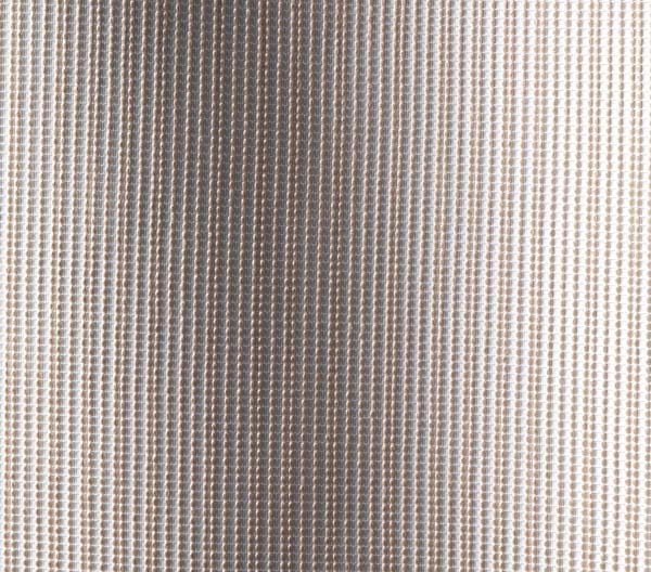 Semi transparant met subtiel verticaal effect gordijnstof. Deze stof heeft een open net structuur. De stof is gemaakt van 100% brandvertragend polyester. Deze stof is kamerhoog ↨ 304 cm. Dat heeft als groot voordeel dat het gordijn geen gestikte banen heeft.