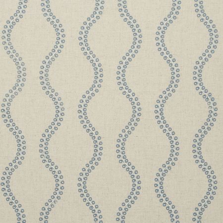 Soepele fijn geweven gordijnstof met met geborduurde golf patroon. De stof is zeer geschikt voor gordijnen en als decoratiestof.